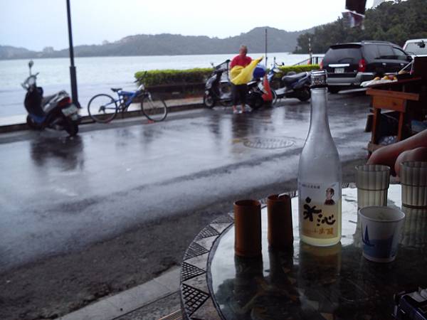 因為颱風..所以沒有太擁擠的人..大陸遊客經過我們身邊..就說你看台灣人多懂得享受.一邊喝酒.一邊賞湖